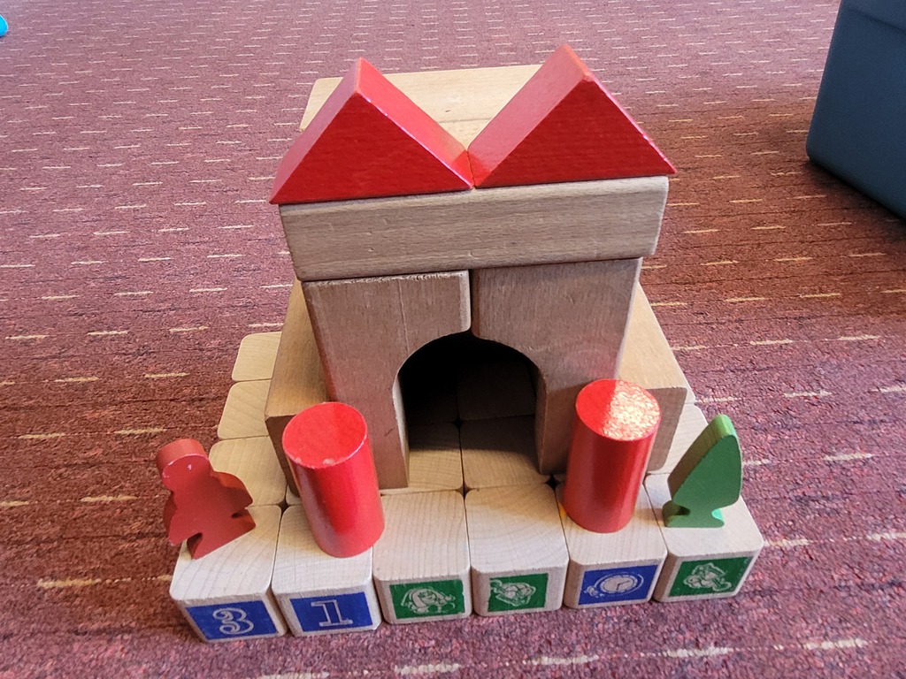 Our Saturday story for May was the Wise and Foolish Builders. We made some models to show the two different houses that were built, and did some practical demonstrations using the wooden blocks.