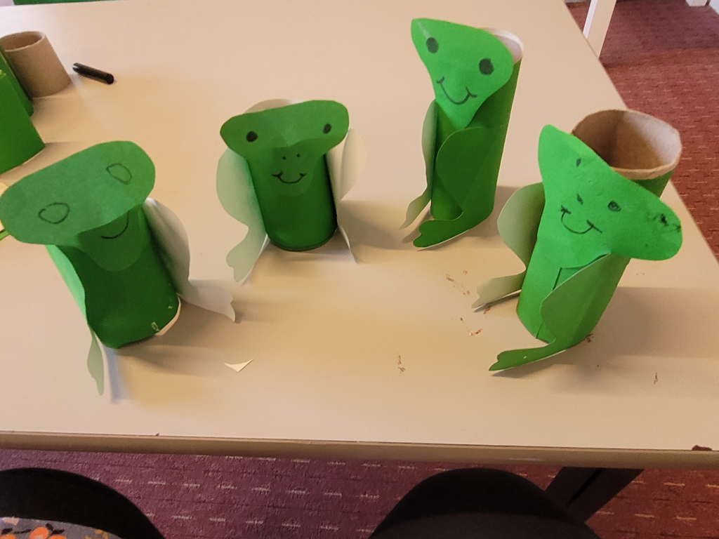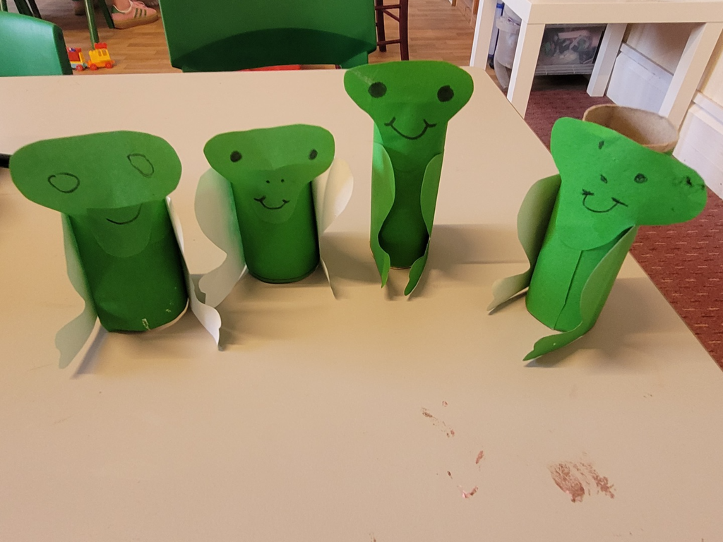 We heard all about how God called Moses from out of the burning bush, and talked about the hard things we sometimes have to do. We heard about the "plagues" sent to Egypt, and started our own plague of frogs.